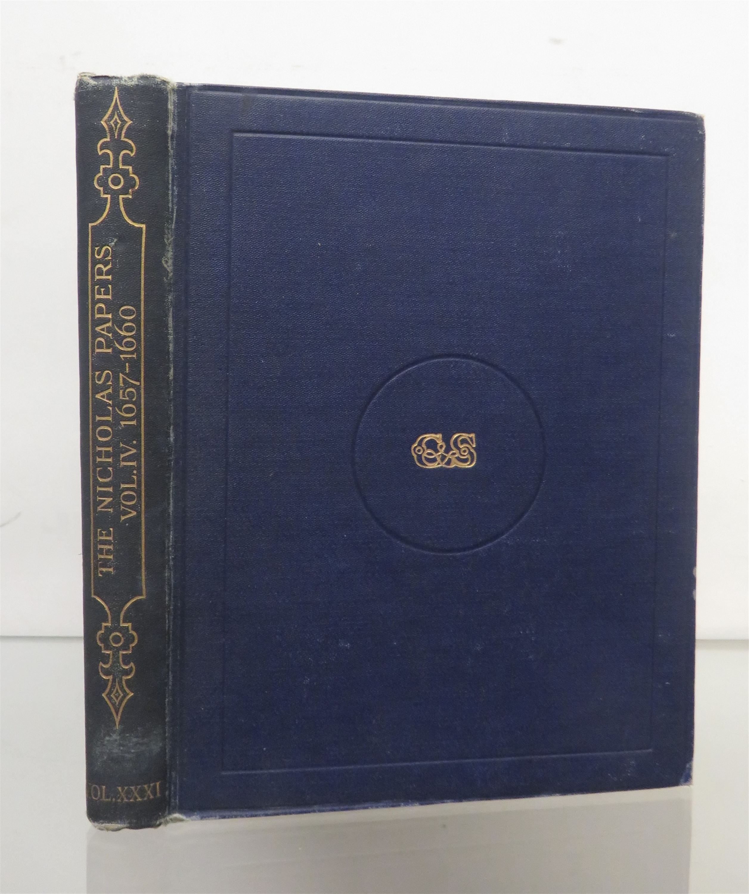 Correspondene of Sir Edward Nicholas, Secretary of State. Volume IV only. Dark blue binding with gilt lettering and detail on the spine and front cover. Overall in very good condition with some wear to the edges of the spine. pp.