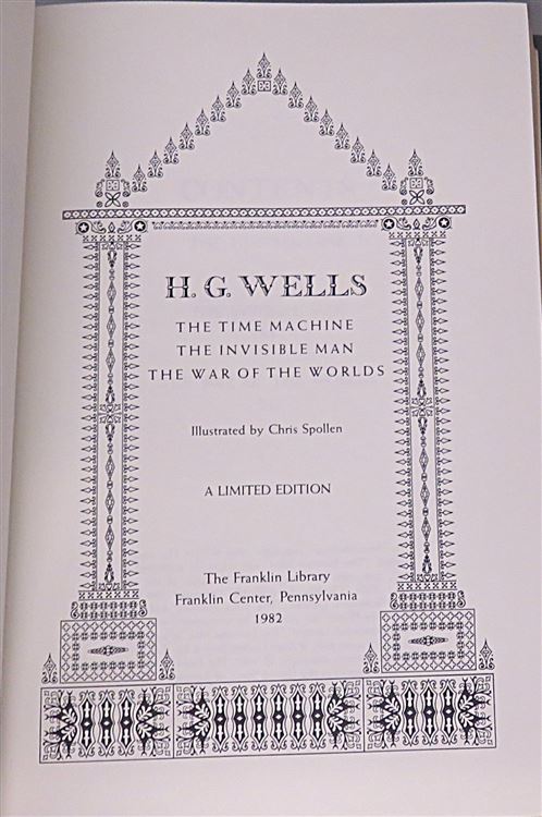 Hardback. A sumptious copy containing three classic stories from HG Wells. Handsomely bound in rich grey leather with gilt decorative detail to the sides. Two red title bands and gilt detail lie between five raised bands to the spine. All edges are bright gilt. Complete with rich red silk endpapers and red ribbon bookmark. A beautiful copy in very good condition. Slight mark to the spine otherwise the binding is in near perfect condition. The pages are clean and bright throughout and illustrated by Chris Spollen. pp. 418. Limited Edition published by The Franklin Library and part of The Collected Stories Of The Worlds Greatest Writers. Superb gift.