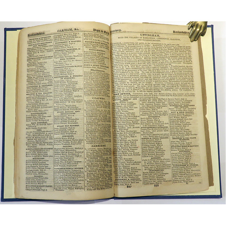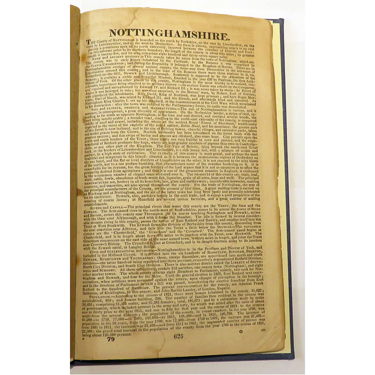 A small snippet from Pigot's Directory re-bound in blue cloth with bright gilt titles to the spine. Included in this volume, Nottinghamshire, Bingham, Blyth Bawtry and Neighbourhoods, Mansfield, Newark Upon Trent and Neighbourhoods, Nottingham, Reference to Nottingham, Ollerton Edwinstow Wellow, Retford ( East & West ) Southwell Farnsfield & Neighbourhoods, Tuxford, Worksop and Neighbourhoods, Rutlandshire, Oakham Langham Whissendine. Uppingham Barrowden & Neighbourhoods. Pages toned with the first six pages lightly stained with small pieces missing to the corners, otherwise clean and in good condition. No maps present. Overall a good copy. Scarce. From the Estate of the late Professor Alan Rogers.