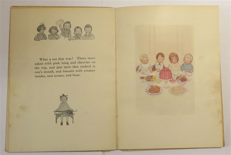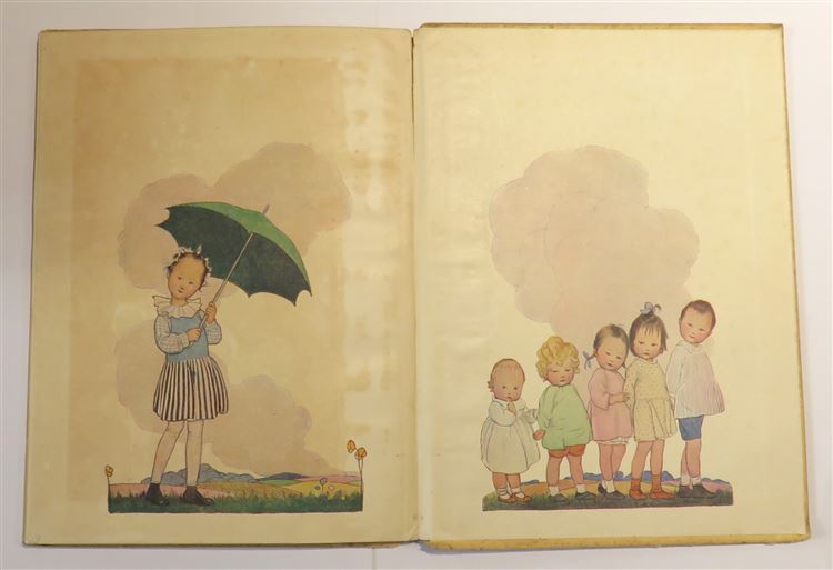 Hardback. Early Edition, 1931. Pretty pictorial paper covered boards which show some discolouration with wear to the spine. This book belongs to bookplate to the verso of the front free endpaper has been neatly filled in, dated 1934. There is some foxing and thumb marks to the margins although the pages are generally clean. Beautifully illustrated endpapers with a full colour illustration to each page, with text and vignettes to the page opposite. Unpaginated. Overall a lovely copy.