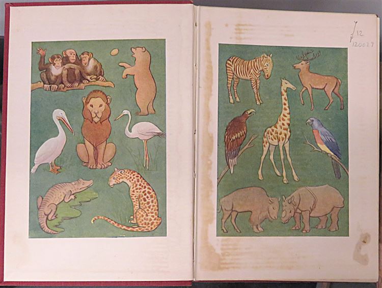 Red cloth with an elephant pictorial - design perfect for children to enjoy - and further illustrations by S B Pearse, the endpapers depict animals with mild toning otherwise clean pages. Neat previous owner's name in pencil to the rear of the front free endpaper as well as a minor stain. No pagination. Good condition with the odd imperfection.