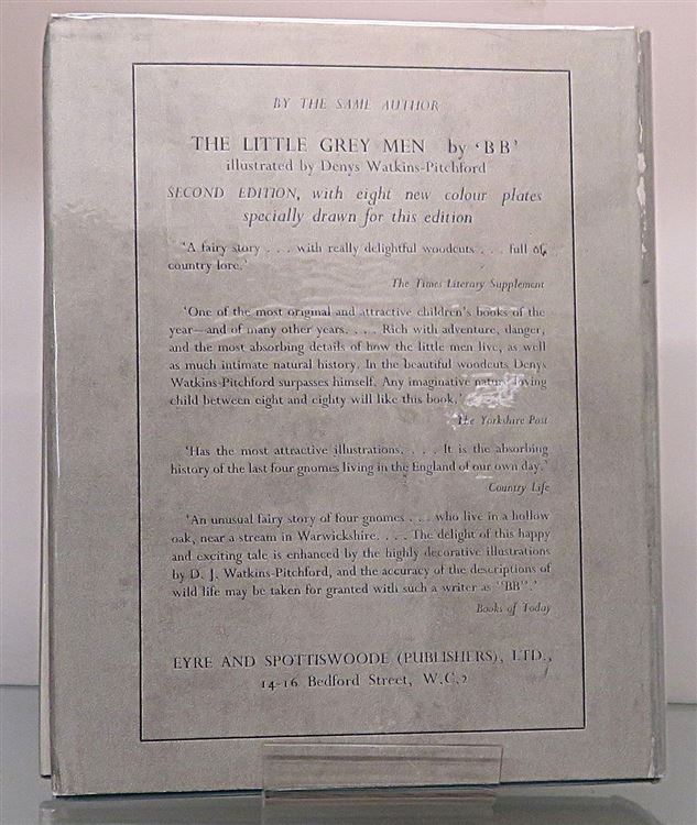 A very good copy with facsimile dust jacket. The sequel to The Little Grey Men. The facsimile dust jacket is in very good condition. Bound in the publisher's original turquoise cloth in good condition despite a little toning to the spine. The pages are very clean throughout and beautifully illustrated with sixteen coloured plates. There is a charming black and white line drawing to the title page as well as to each chapter heading. pp. 200. Overall a very good copy.