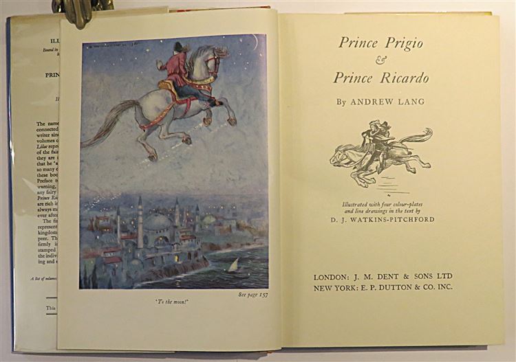 First Edition Thus. A beautiful collection of stories about Prince Prigio and his son Prince Ricardo gathered together by Andrew Lang. Beautifully illustrated by Denys Watkins-Pitchford with four colour plates and many line drawings with-in the text. The dust jacket with pictorial front cover is in good condition despite a little fading to the spine. Not price clipped. Underneath lie beautifully decorated cloth boards in a very good, clean sharp condition. Decorated endpapers matching the cloth boards show no bookplates or inscriptions. The rest of the pages appear unread. pp. xvii + 171. Overall a very good copy.