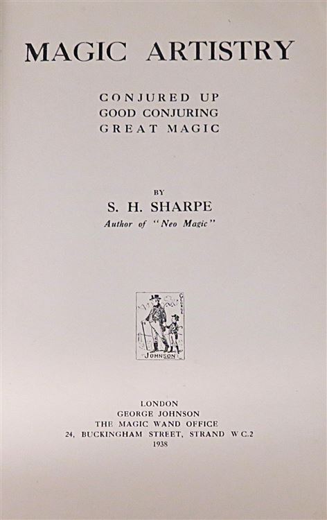 Magic Artistry: Conjured up, Good Conjuring, Great Magic. This lovely paperback edition of "Magic Artistry" is lookng for a new home. This work was produced by S. H. Sharpe as a compliment to his earlier work, "Neo Magic", and is said to take the art of the conjurer to a stage beyond just mere tricks. The book has 67 pages of text, and other than some minor foxing and bumping, it is in otherwise great condition. This book would make for a lovely gft for any budding conjurers in your household.