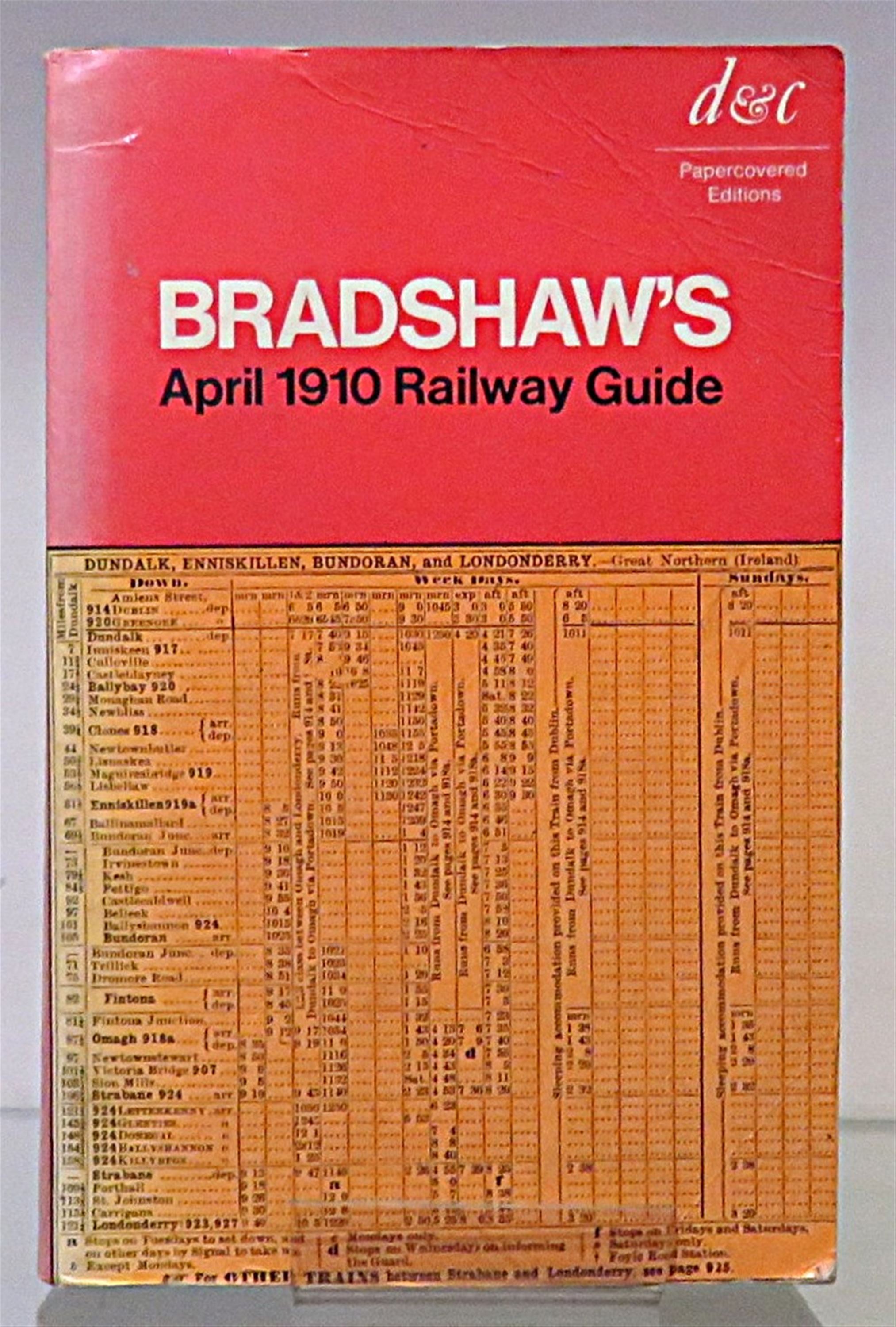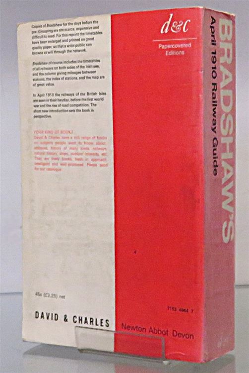 Paperback. A New Edition of the April 1910 issue of Bradshaw's General Railway and Steam Navigation Guide for Great Britain and Ireland with enlarged type and introduction by David St John Thomas. The card covers are a little creased and faded while internally the pages are clean. pp. lxxiii + 1190. A fascinating guide featuring the timetables of 1910 as well as the lure of many advertisements. A glimpse of England and Ireland's railway system of 1910.