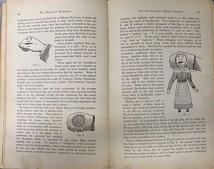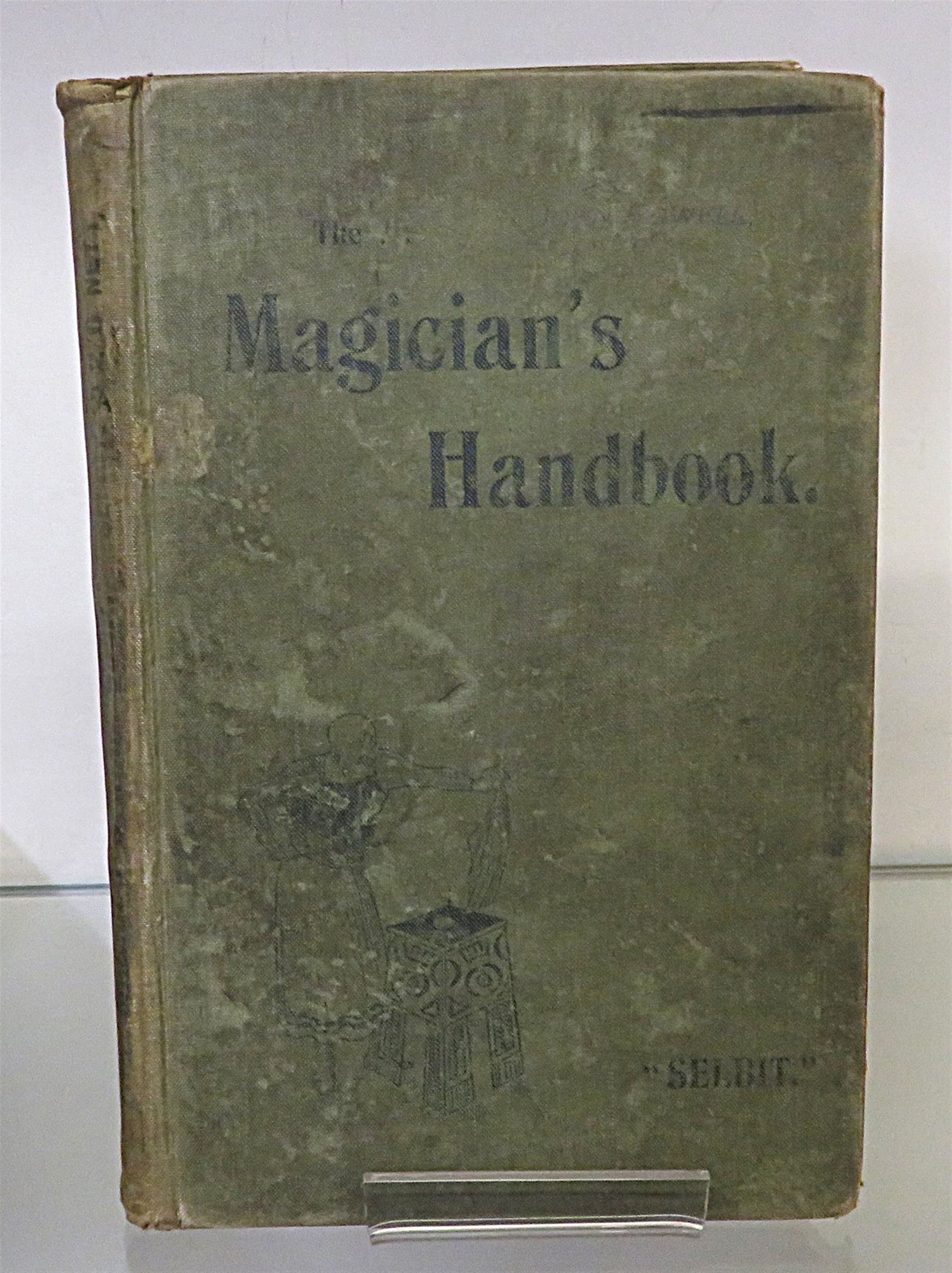 St Mary's Books is proud to present this lovely circa 1901 edition of "The Magician's Handbook: A Complete Encyclopedia of the Magician's Art for Professional and Amateur Entertainers" by "Selbit". This hardback copy is bound in a lovely olive green cloth and features black ink lettering and illustrations to the cover and spine. Inside, one finds 198 pages of text, supplemented by a mixture of instructional and whimsical black ink illustrations. This book is in fair condition - the cover is worn, the spine is weak and is held together with tape, there is foxing throughout the book, and many inscriptions to the title page - however, much of the damage is more than fair given the age of the copy. This edition is looking for a new home, and would be a lovely gift to any budding magicians.