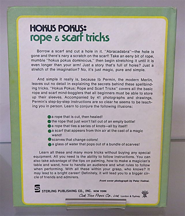 This lovely hardback edition of "Hokus Pokus: Rope and Scarf Tricks" by Ib Permin, is now in the possession of St Mary's Books. The pictoral board has a photograph of hands holding multicoloured scarfs. Inside, one finds 72 pages of text, including an index. This book is in vey good condition, meaning it has no visible blemishes - it is now looking for a new home, and would make for a lovely gift.