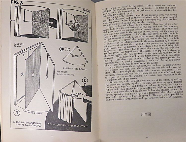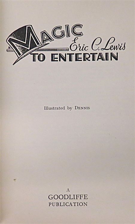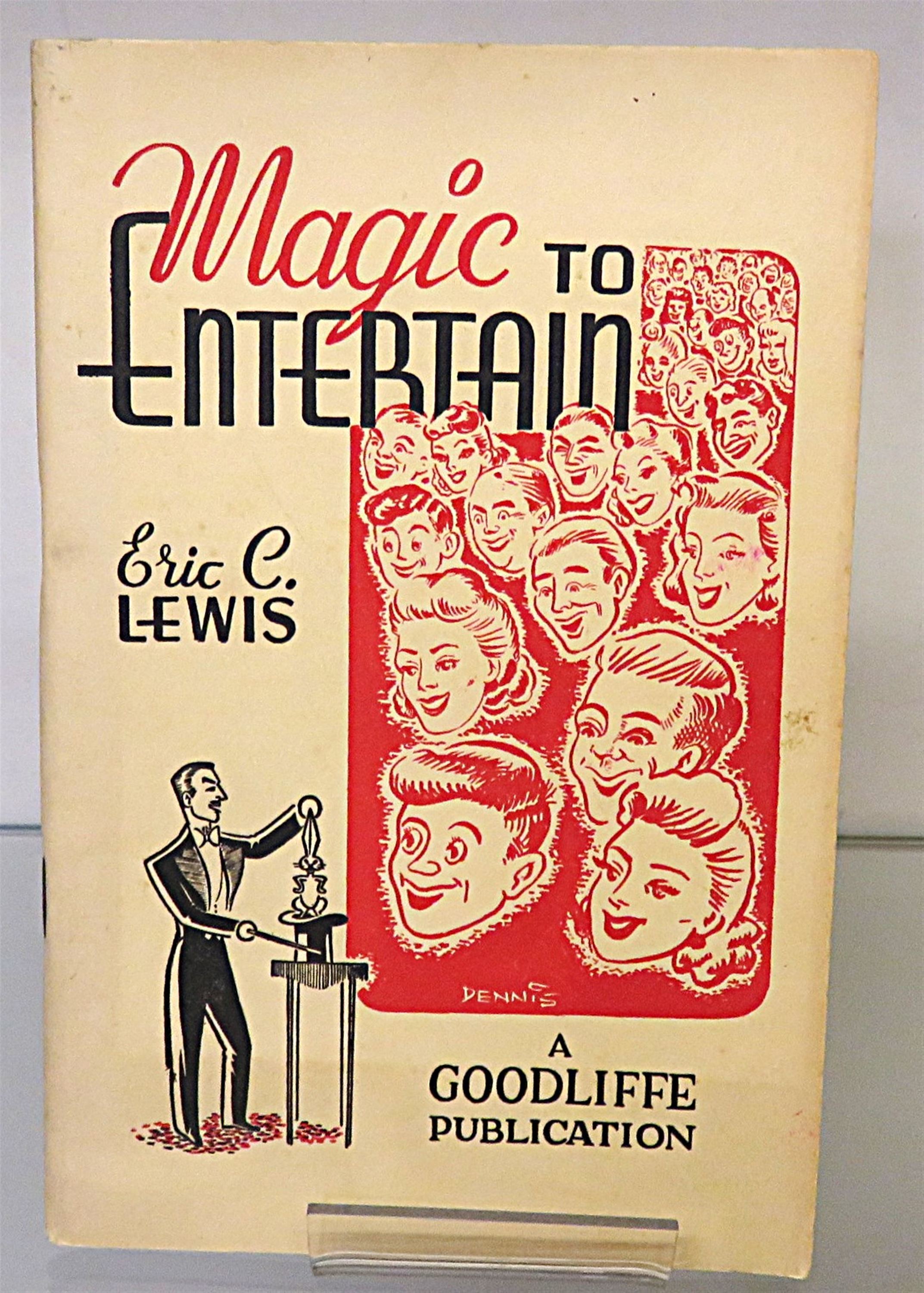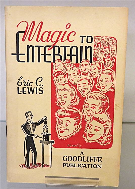 This lovely 1947 first edition of "Magic to Entertain" by Eric C. Lewis has come into the possession of St Mary's Books. This paperback book has stunning pictoral boards illustrated in striking black and red ink by Dennis. Inside, one finds 72 pages of text, peppered with similar instructional black ink illustrations. This book is in good to very good condition. despite some small stains to the covers, there are no other visible blemishes, and the copy remains very clean and readable despite its age. This book is looking for a new home, and would be the perfect gift for any budding magicians.