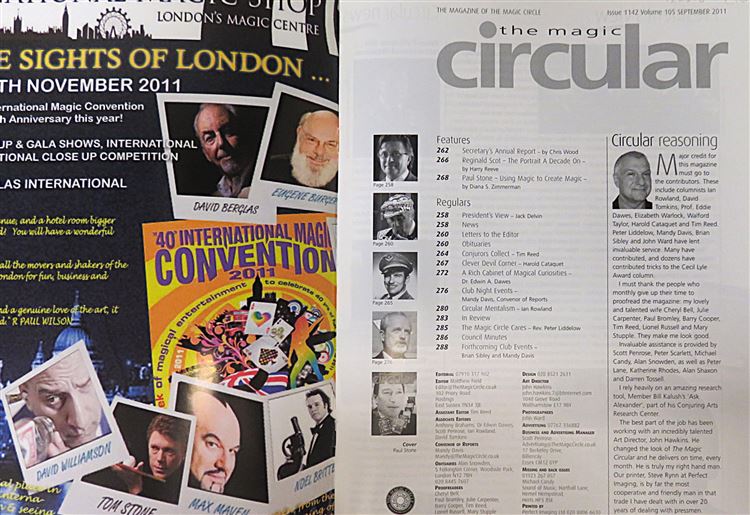 This lovely September 2011 edition of "The Magic Circular", the official magazine of "The Magic Circle" is now in the possession of St Mary's Books. This edition features an image of Paul Stone to the cover. Inside, one finds 288 pages of text, complete with black and white and full colour photographs, articles by magicians and magic enthusiasts, cartoons, and tricks. This edition is in very good condition, meaning it has no visible blemishes. This copy is looking for a new home, and would be the perfect gift for any collectors of Magic Circulars.