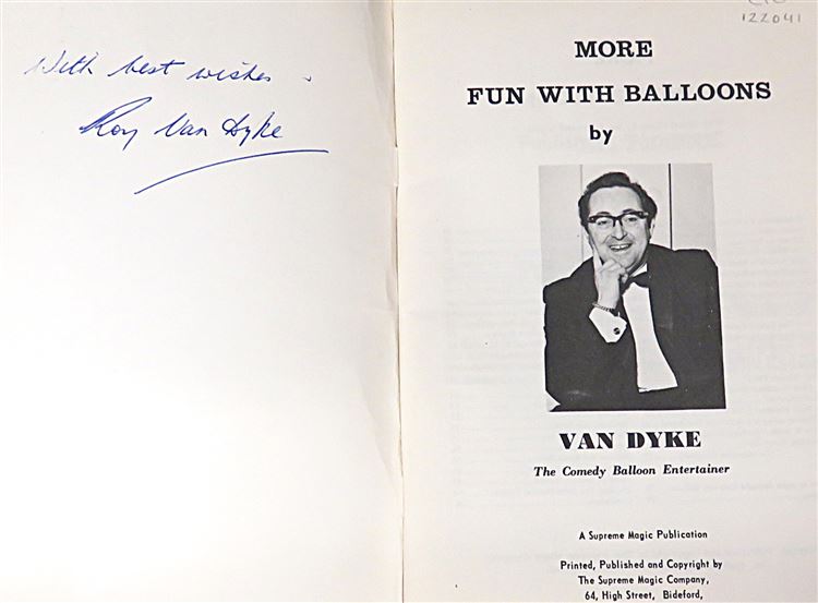 This lovely edition of "More Fun with Balloons" by Roy van Dyke is signed by the author. Beyond the lovely black and white cover which features a photograph of van Dyke, one finds 60 pages of text instructing the reader on how to create various balloon shapes. These instructions are supplemented with black and white photographs of the author, as well as lovely black ink illustrations by Ian Adair and "Corth". This book is in good to very good condition, with very few visible imperfections. This edition is looking for a new home, and would be a perfect gift for any amateur magician looking to enhance their craft.