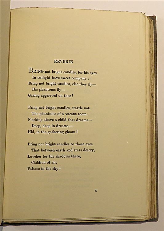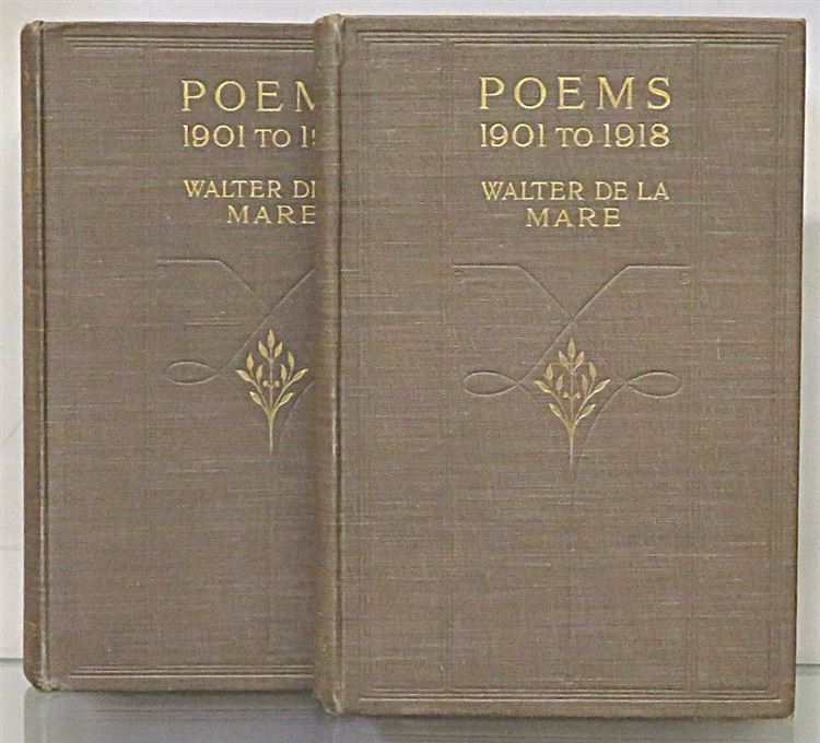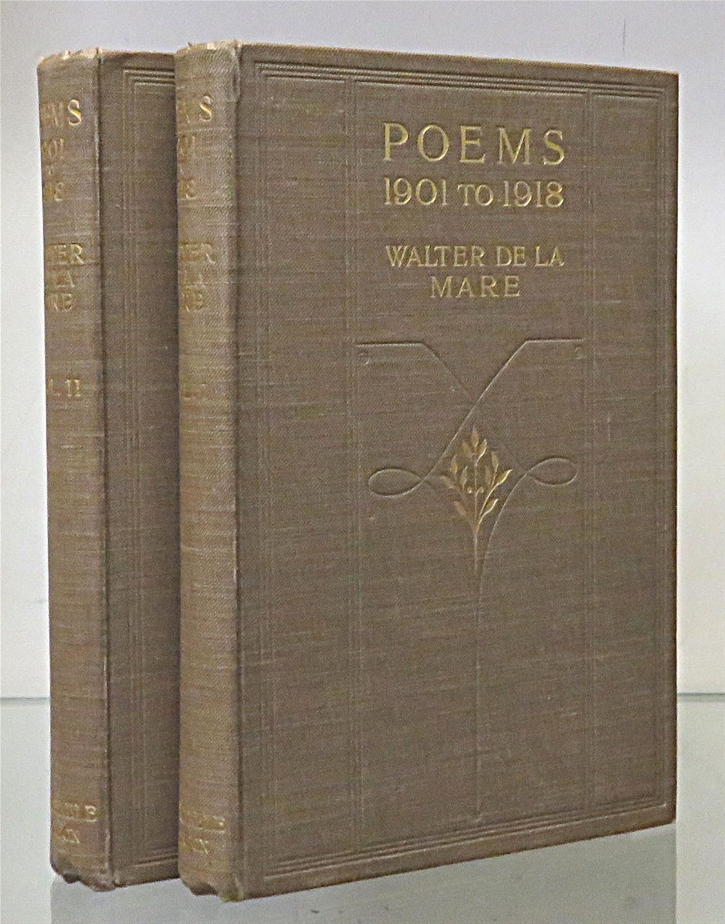 Hardback. Fourth impression, 1925. A handsome two volume set of Walter De La Mare collection of poems with his most famous poem, "The Listeners" to volume one. Both volumes bound in grey cloth with bright gilt titles to the front and spine. There is a little creasing to the lower right hand corner of volume two, and wear to the corners. The binding however, is clean and bright and show very little wear. The top edge is heavily foxed with inscription to the front free endpaper of both volumes. The rest of the pages are very clean throughout. Overall a very good set.