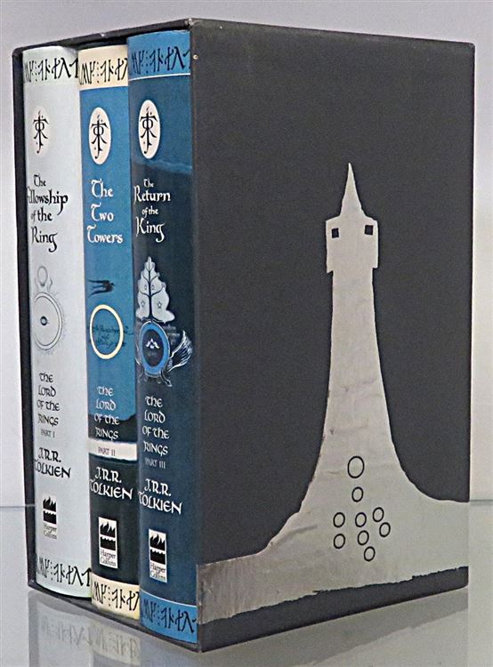 Hardback. A beautiful set of J.R.R. Tolkien's classic story of adventure. Each volume is complete with a beautifully illustrated dust jacket while underneath lie grey cloth boards with titles printed in silver to the spine. All volumes are housed in a grey slipcase. Overall the set is in very good condition although faded to the spines. The slipcase shows minimal edge wear. The pages are slightly toned although clean throughout. Scarce in this edition and complete with the slipcase.