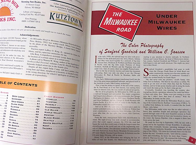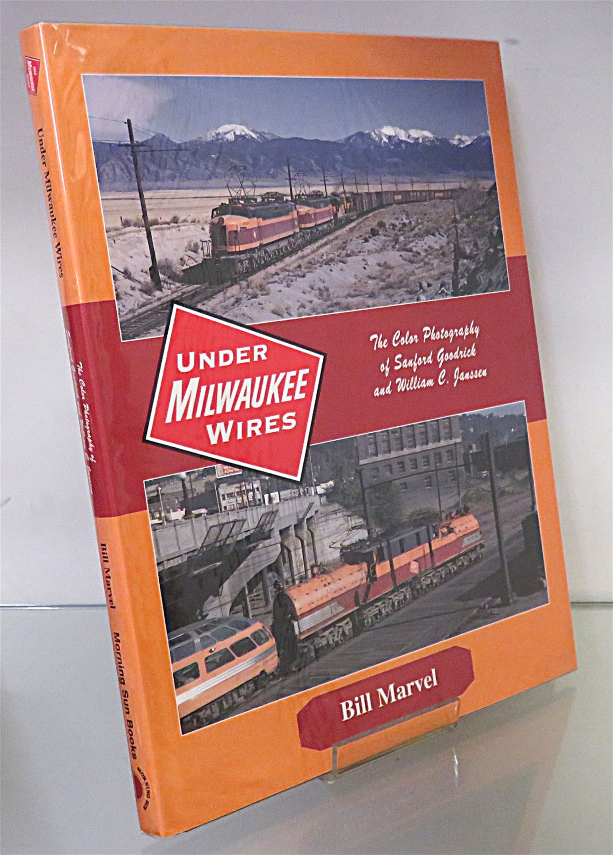 This lovely edition of "Under Milwaukee Wires" by Bill Marvel, featuring colour photography by Sanford Goodrick and William C. Janssen, is now in the possession of St Mary's Books. Beneath the vivid orange and red dustjacket, featuring photographs of Milwaukee Trains, this hardback book is bound in deep red mock leather with silver gilt lettering to the cover and spine. Inside, one finds 128 pages of beautifully presented text peppered with lovely images of Milwaukee locomotives. This book, and its dustjacket, are in very good condition - they have been very well preserved by previous owners and as such have no notable blemishes or imperfections. This book is looking for a new home, and would be a perfect gift for any enthusiasts of US trains.