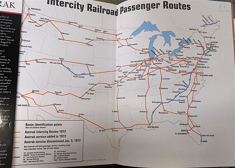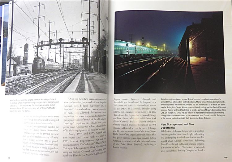 This lovely 2004 First Edition of "Amtrack" by Brian Solomon, one of today's most accomplished Railway Historians, is now in the possession of St Mary's Books. This hardback book has a pictoral board which matches its dustjacket exactly - a smartly presented cover which prominently features a full colour photograph of an Amtrack train. Inside, one finds charming free endpapers, which display detailed maps of the Amtrack routes before and after 1972. Beyond this, this book has 160 pages of text including indicies, and the detail the author provides about the history of Amtrack is peppered with beautiful full-colour photographs. This book is in very good condition, there are no notable imperfections to the dustjacket or the interior. This book is looking for a new home, and would be the perfect gift for any US train enthusiast, or Amtrack historian.