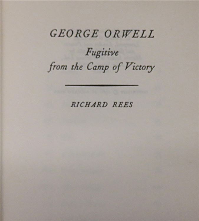 This lovely 1961 first edition of "George Orwell: Fugitive from the Camp of Victory" by Richard Rees is now in the possession of St Mary's Books. Beneath the charming butter yellow dustjacket with maroon ink lettering, this hardback book is bound in a lovely pale green cloth, and features gilt lettering and decorations to its spine. Inside, one finds 160 pages of text, including indicies. This lovely book, intended as an introduction to Orwell, is a study of all of his works, and aims to highlight some of his earlier, lesser known texts as well as throw new light on his most famous ones, "Animal Farm" and "1984". This book is in good condition - the dustjacket has held up remarkably well, with only some minor staining, bumping, and tears and there is some slight fading to the cloth boards, however the inside remains remarkably clean and readable. This copy is looking for a new home, and would be the perfect gift for any collectors or Orwell enthusiasts.