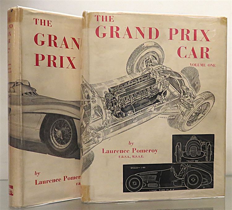 Hardback. Volume 1 published 1954, revised edition. Cover illustration of the 1937 Mercedez-Benz type W125. Not price clipped. With some minor discolouration, particularly to the top and tail of the spine. The dust jacket has been covered in a clear protective wrap. Internally there are 32 pages of photographs on which appear 52 pictures of racing cars and their constructional features and a lithograph section containing 14 pages of reproductions of the pencil sketches made by the artist Cresswell during the course of his researches. light toning to the endpapers and small siganture dated 1954 to the front free endpaper. pp. 267. Volume 2, published 1954, not price clipped, described as "the most authoritative book on motor racing ever written" it surveys the road-racing events of the post-war period from the initiation of Formula 1 in 1947 to the present time under Formula II. Foreword by the author, black and white photographic plates. Cover illustration of the 1954 Mercedez Benz type W196, minor discolouration to the dust jacket particulary to the top and tail of the spine. The pages are clean despite a signature to the top of the front free endpaper. pp. 344. Overall a remarkable set, unusual to see in two complete volumes.