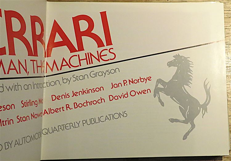Hardback. First Edition. Beautifully bound in Ferrari red cloth with the Ferrari insignia to the front and gilt titles to the spine. Complete with an unclipped dust jacket. The book is profusely illustrated with chapters by Phil Hill, Stirling Moss, Jan P. Norbye and more. Overall a good copy with the binding in excellent condition and no marks or inscriptions to the pages. The dust jacket is a little worn with small closed tears to the extremities. pp. 348. This book is an indepth study of both man and marque by an international roster of racing drivers, journalists and automotive historians.