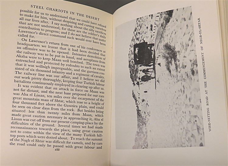 This lovely 1988 revised edition of "Steel Chariots in the Desert: The Story of an Armoured-Car Driver with the Duke of Westminster in Libya and in Arabia with T. E. Lawrence" by S. C. Rolls is now in the possession of St Mary's Books. Beneath the charming blue dustjacket which features a black and white photograph of Rolls chaufferring T. E. Lawrence, this hardback book is bound in navy mock leather with gold gilt lettering to its spine. Inside, one finds 286 pages of text, supplemented with some black and white photographs and maps, detailing the wartime escapades of S. C. Rolls as an armoured car driver. This book is in very good condition - though there are some slight bumps to the dustjacket, the book itself has no notable imperfections. This book is looking for a new home, and would be the perfect gift for the military history enthusiast, or the Rolls-Royce fan.