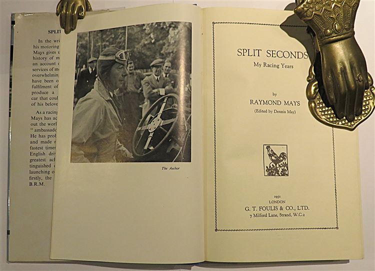Hardback. A first edition copy with inscription from Raymond Mays to the front free endpaper. Edited by Dennis May. Complete with a pictorial dust jacket and illustrated with several black and white photographic images. Overall a very good copy with the blue cloth boards in near pristine condition. The dust jacket is chipped and worn to the extremities, with some fading especially to the spine. Slight lean to the spine. The pages are very clean throughout. pp. 306. An account of a life spent in the services of motor-racing, of almost overwhelming difficulties which have been overcome, and of the fulfilment of a life's ambition to produce a representative racing car that could uphold the prestige of his beloved country.