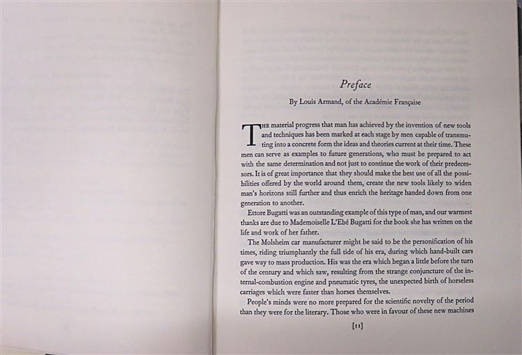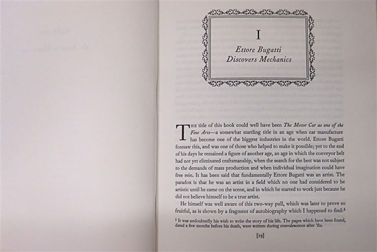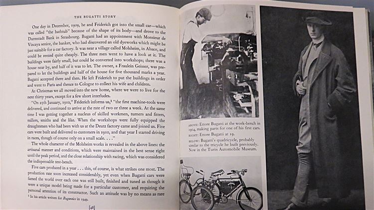 This lovely 1967 first British edition of "The Bugatti Story" by L'Ebe Bugatti, Ettore's eldest daughter, is now in the possession of St Mary's Books. Beneath the chamring dustjacket featuring a black and white image of a Bugatti, this hardback book is bound in a charcoal grey cloth with gold gilt lettering and decorations to the spine. Inside, one finds 207 pages of text, featuring numerous black and white photographs. This book is in very good condition, the dustjacket is remarkably well preserved and the interior of the book is clean and readable. This book is looking for a new home, and would make for a perfect gift for any Bugatti enthusiasts.