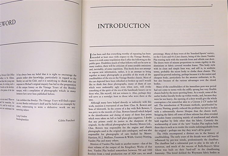 St Mary's Books is proud to present this stunning 1992 second edition of "Bentler: The Vintage Years 1919-1931" by Michael Hay. Beneath the charming green dustjacket featuring a black and white photograph of a Bentley, this hardback book is bound in green cloth, and features gold gilt decorations and lettering. Inside, one finds 522 pages of beautifully presented text, supplemented with numerous black and white images of Bentleys throughout the vintage years. This book is in very good condition, other than the dustjacket which is bumped and slightly worn, this book is remarkably clean and well-preserved, with few notable imperfections. This book is looking for a new home, and would make for a perfect gift for any Bentley enthusiast.