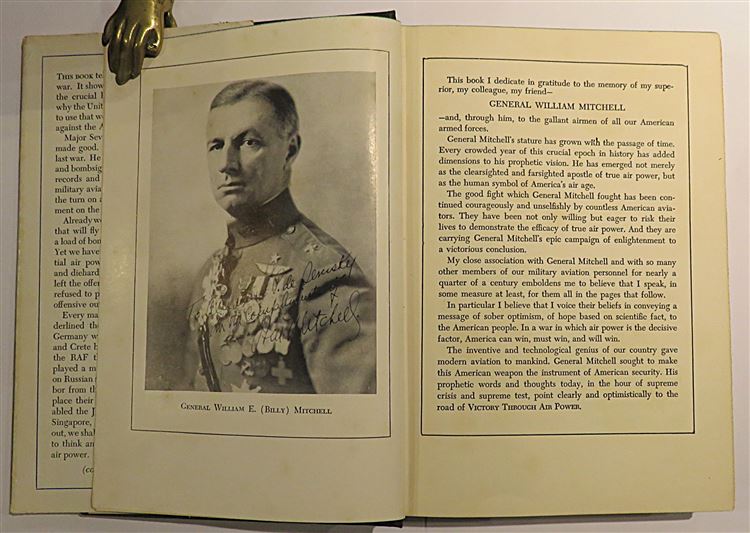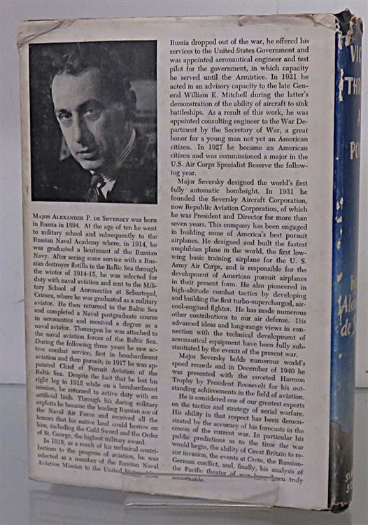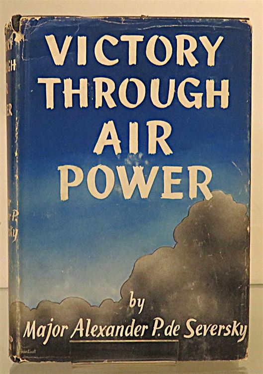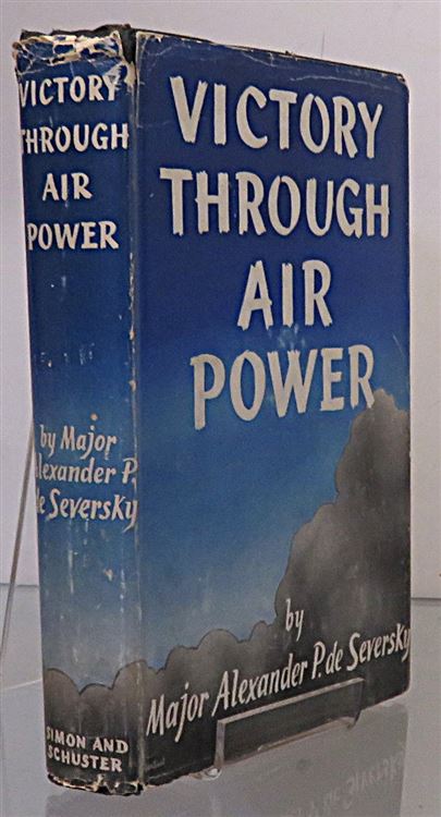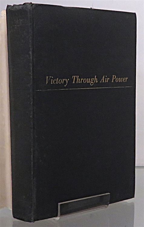 Hardback. The Second, U.S. printing of "Victory Through Air Power" complete with a pictorial dust jacket. Underneath lie black cloth boards with gilt titles to the front, although the titles have faded to the spine the binding remains in good condition. The dust jacket shows wear to the extremities with chipping along the top and base of the spine. There is a large neat inscription and ink stamp to the front free endpaper. The rest of the pages are clean and illustrated with several black and white photographic plates. pp. x + 354. This book shows how long range air power could cause the defeat of the Axis and Japan during World War II.