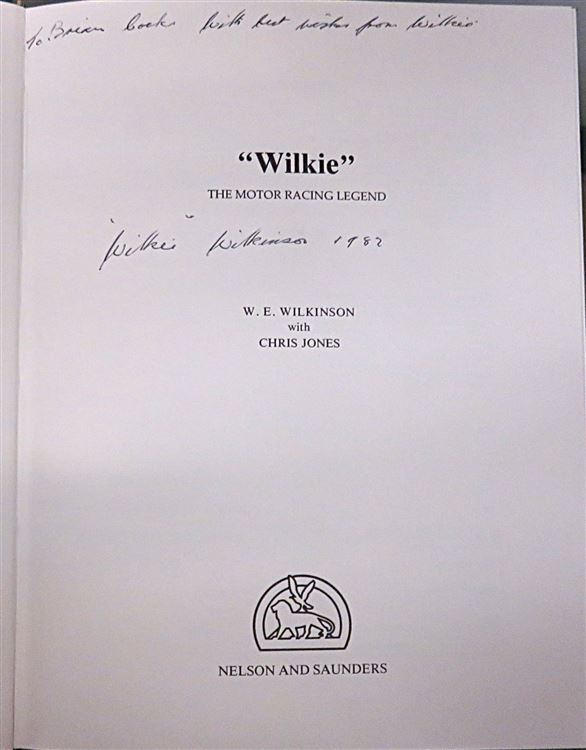 This lovely 1987 first edition of "Wilkie", signed by W. E. Wilkinson, has a lovely blue dustjacket featuring a black and white photograph of a racing car. Underneath, this hardback book is bound in blue cloth with white ink lettering to the spine. Inside, one finds 224 pages of text, supplemented by 150 black and white photographs, detailing the memoirs of one of hte most famous racing managers. This book is in very good condition, with no notable imperfections to the dustjacket or the book itself, it appears almost unread. "Wilkie" is looking for a new home, and would make for a perfect gift for any racing enthusiast.