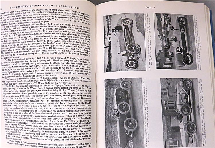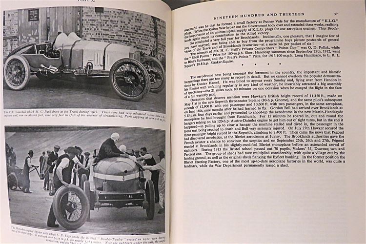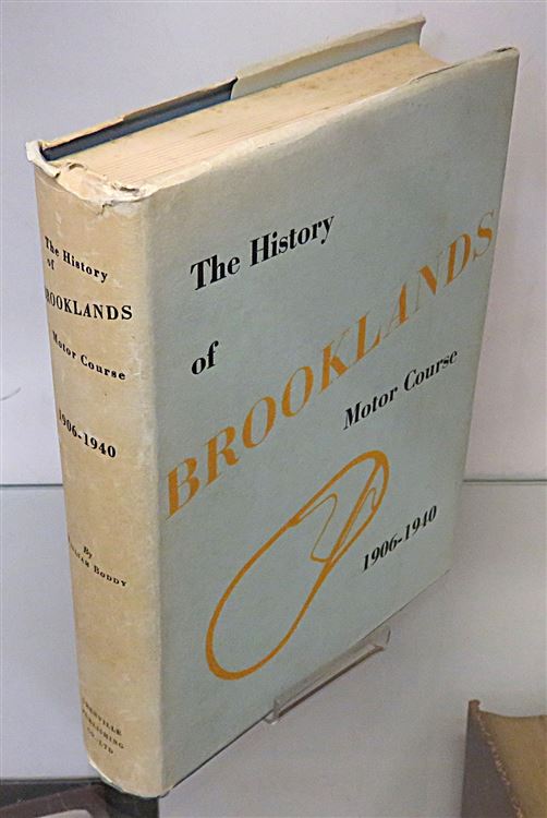 This lovely hardback edition of "The History of Brocklands Motor Course 1906-1940" by William Boddy is housed in a charming light blue slipcase, with black and yellow ink lettering and decorations. Underneath, this book is bound in blue cloth with gold gilt lettering and decorations to its spine. Inside, one finds i-xv and 368pp. supplemented by 120 plates of black and white photographs, detailing the history of the course compiled from the official records of the Brocklands Automobile Racing Club. This book is in fair to good condition, there is some foxing to the edges, and some sun damage, tears and minor stains to the dustjacket - however, the interior remains clean and readable. "The History of Brocklands Motor Course" is looking for a new home, and would make for a perfect gift for any motoring enthusiast.