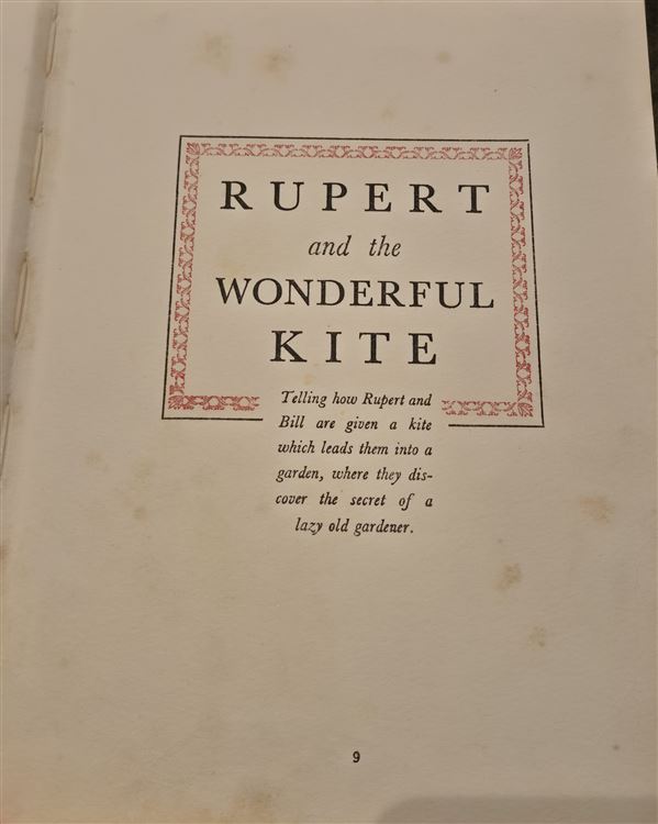 This being the 1st ever Rupert the bear Annual, 1st published in 1936, this shows Rupert the bear sitting reading a book, this book belongs to: has neatly been filled in "Xmas 1937" This is the 1st ever Rupert and the one that lead to this famous little bear becoming a household name, published every year, with Children of all generations buying a copy, of this famous Annual. this copy shows some rubbing and foxing to the early pages, overall a good example of this iconic little bear. Page 124 has been coloured, with the rest of the annual clean.