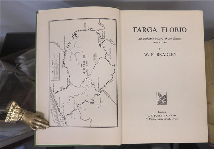 An authentic history of the famous motor race, bound in green boards. This book is illustrated throughut with black and white photographs. There is also a map depicting the Madonie Circuit, the Short Madonie Circuit, and the Polizzi Circuit on the frontispiece. Overall, it is in good condition. The pages are clean and the binding remains strong. There is some slight rubbing to the edges of the spine. pp. 164.