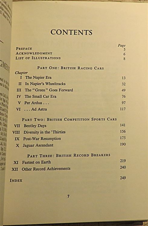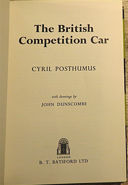 Hardback First Edition. A good copy with pictorial dust jacket over green cloth boards. The dust jacket is a little worn especially to the extremities with tape repair to the underside. The cloth boards are a little discoloured in places although present well. There is the occasional foxing to the margins, however the pages remain fairly clean throughout. Illustrated with several black and white photographic images. pp. 256. The author, one of the most respected authorities on the subject, starts with the Napier and continues with Wolseley "Beetles", early Vauxhall, Sunbeam, Bentley, ERA and post war the Connaughts, BRM, Aston Martin, Jaguar, Vanwall & the Cooper.