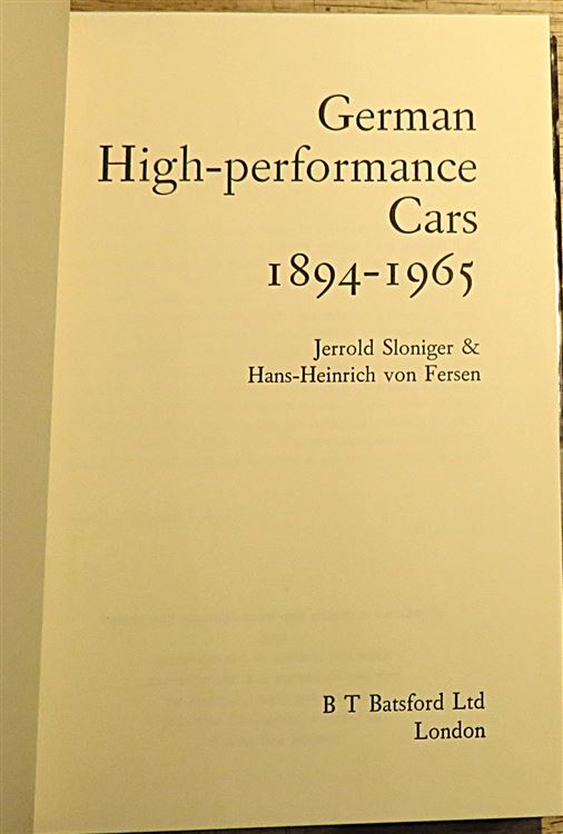 Hardback. First Edition. An excellent book on German high performance cars covering all the marks. The pictorial dust jacket shows a little wear although clean and generally in good condition. Underneath lie cloth boards which are in excellent condition with bright gilt titles to the spine. The pages are free of any marks or inscriptions and illustrated with several diagrams and black and white photographic images. pp. 264. Overall a very good copy, ideal for any motoring enthusiast.