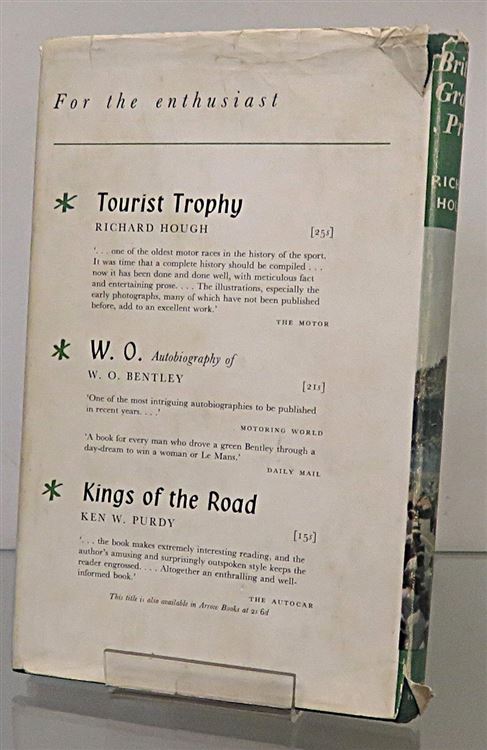 Hardback. First Edition. The pictorial dust jacket is clean, however there are small closed tears and wear to the extremities. Underneath lie green cloth boards with a little shelf wear to the spine, although in very good condition. The pages within are clean and illustrated with several black and white photographic plates. pp. 160. A non-fiction book providing an exciting and historical account of Grand Prix motor racing in Britain from its early beginnings to the late 1950's.