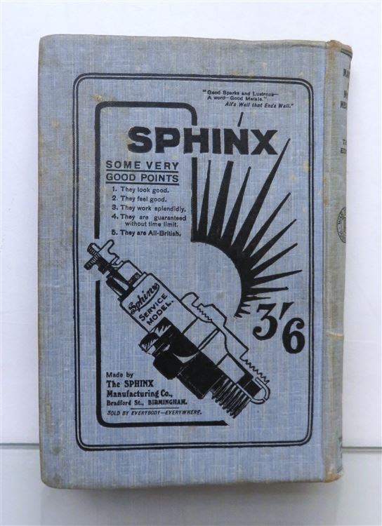 Dealing with the functional working of the internal combustion engine, fundamental principles of carburation, with a special section describing the adjustment of every well known make of carburetter. This edition is bound in light blue cloth with a detailed black illustration on the front cover and an advertisement on the back cover. It is illustrated throughout with detailed diagrams by the author. Overall, this book is in good condition. The pages throughout are clean and undamaged. There is an ink stain on the front cover and some other subtle marks, as well as some fading in the spine. The binding is sturdy. pp. 196.