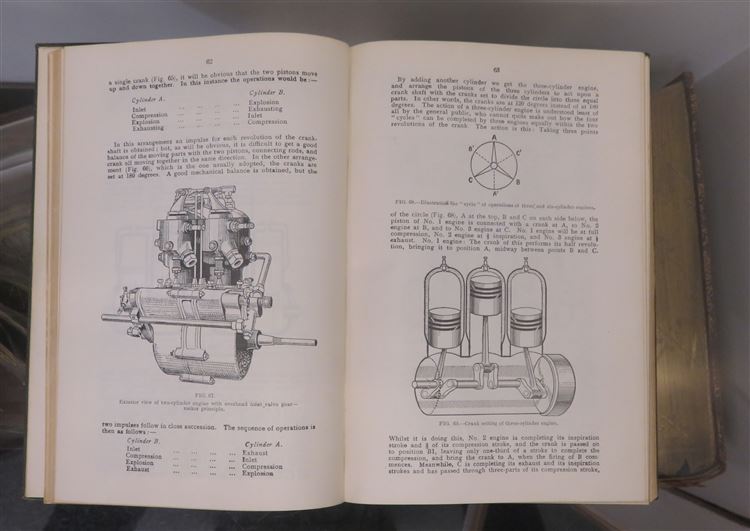 A practical handbook dealing with the working principles, construction and management of petrol cars, with chapters on all ignition systems, transmission gearing, pneumatic tyres, the selection, driving, manipulation, cleaning and maintenance, repair and adjustment of motor vehicles, dictionay of technical terms, useful H.P. and speed tables, formulae, hints for the novice, notes on the motor car act, etc. It is bound in green cloth with gilt lettering and detail on the front cover. This edition is illustrated with 160 specially prepared diagrams. In very good condition with clean and bright pages throughout. The cover is clean and undamaged, with only some wear to the extremities. pp. 204 + pages of advertisements.