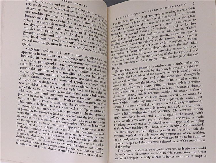 This lovely 1946 first edition of "Speed Camera: The Amateur Photography of Motor Racing" by E. S. Tompkins is now in the possession of St Mary's Books. Beneath the original dustjacket, featurign a photograph of E. Lloyd-Jones at Prescott, this hardback book is bound in a lovely beige cloth with black ink lettering to its spine. Inside, one finds i-viii and 100 pages of text, including 56 photographs by the author himself, and details how to use ones camera to the best advantage. This book is in good condition, though the dustjacket can only be described as fair a it is slightly bumped and torn, the book itself, other than some slight foxing to the edges, is clean and readable. This book would make for a lovely gift, and it is now looking for a new home.
