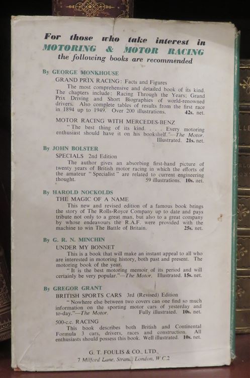 This book gives to the enthusiast a vast amount of valuable information (with servicing notes) about many famous makes of cars from the continent. This book will make instant and lasting appeal to all who wish for information on a fascinating subject and especially to those who take interest in the history of the motorcar. Bound in red cloth with faded gilt lettering on the spine. This edition is richly illustrated throughout with black and white photographs. Overall, this book is in good conidtion. The pages are consistently clean and bright. The dust jacket is in fair condition, with multiple closed tears to the edges. pp. 136.