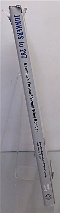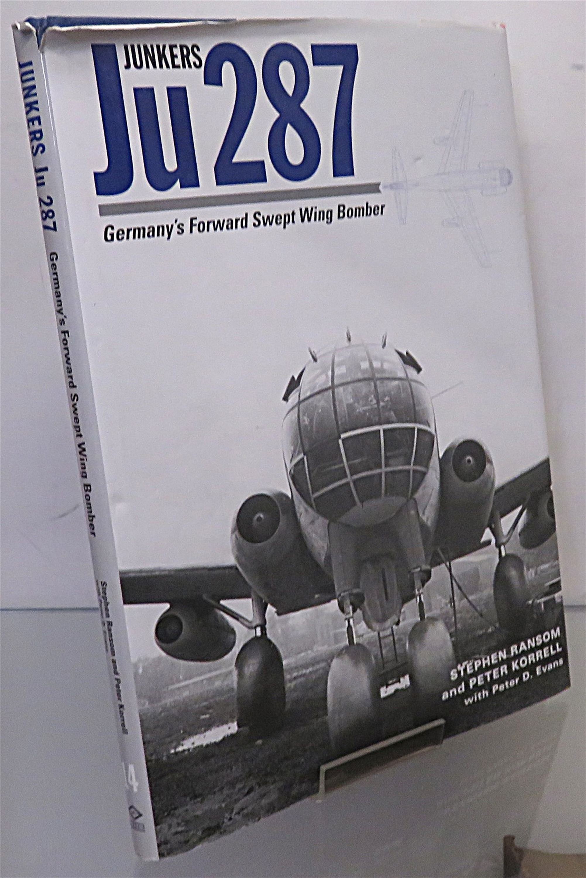 St Mary's Books is proud to present "Junkers Ju 287: Germany's Forward Swept Wing Bomber" by Stephen Ransom and Peter Korrell with Peter D. Evans. Housed in its original dustjacket featuring black and white photographs of the Junkers Ju 287, this hardback book is bound in a handsome navy blue cloth with white ink lettering to the spine. Inside, one finds 160 pages of text (including indices) peppered with black and white photographs, original documents and diagrams, and green and blue ink decorations. This book tells the story of the inception, creation, and execution of the worlds first truly swept-winged jet-powered aircraft. This book is in very good condition, though the dustjacket can only be described as good as it is unfortunately torn, the book itself appears virtually unread with few notable blemishes. This book is looking for a new home, and would make for a perfect gift for any aviation enthusiasts.