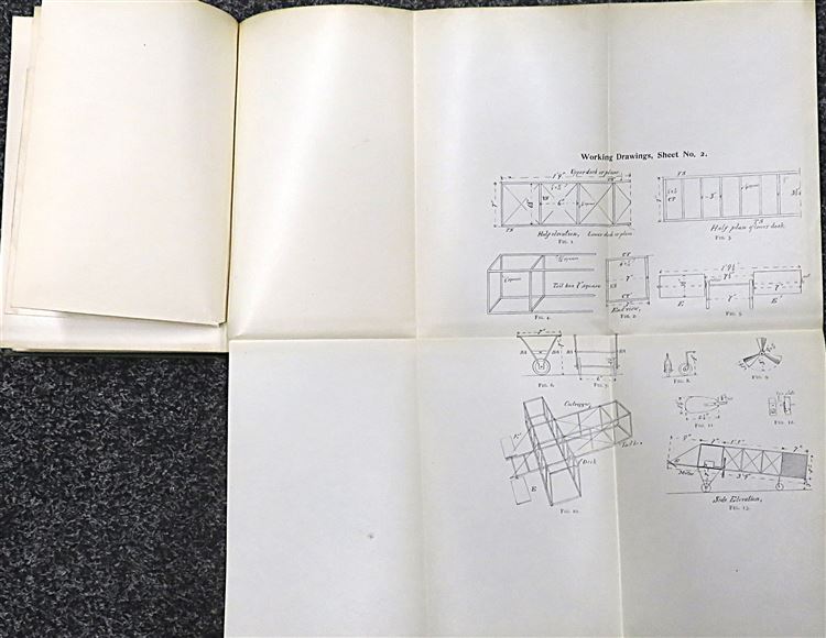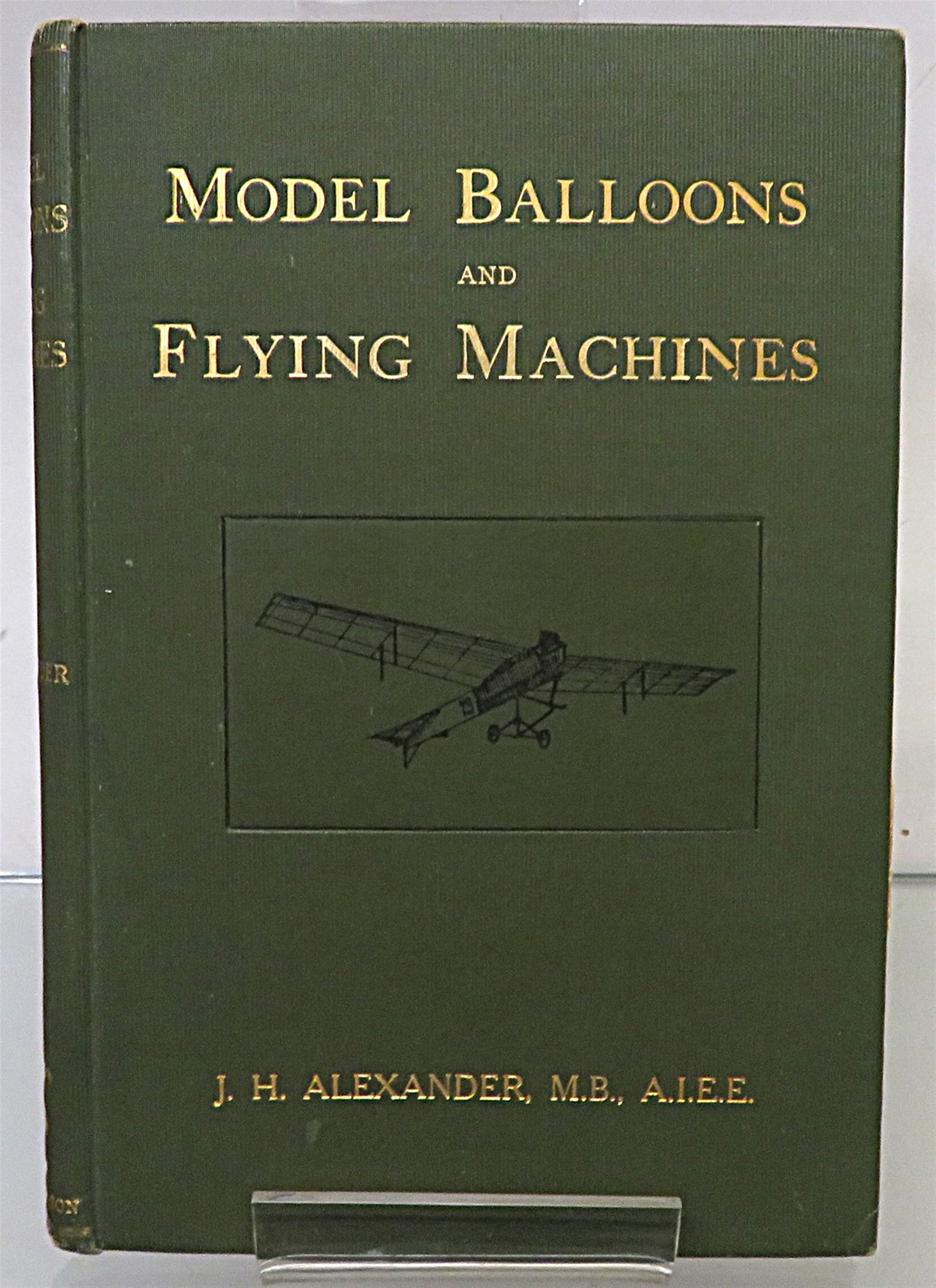 St Mary's Books is proud to present this stunning 1910 edition of "Model Balloons and Flying Machines with a short account of the progress of aviation" by J. H. Alexander, M. B., A. I. E. E. Bound in stunning olive green buckram with gold gilt lettering, this book features a charming black ink illustration of a plane on its cover. Inside, one finds i-x, 127pp., and 32 pages of advertisements, detailing the author's ideas to assist those pioneers who were attempting to build the first flying machines. Peppered with black and white photographs, including a stunning image of M. Bleriot landing at Dover after his cross-channel flight on the frontispiece, this book also contains 5 sheets of working drawings to the rear with the authors various suggestions as to how to construct an aircraft. This book is in good condition, though the cover is slightly bumped, there is an inscription on the front free endpaper, an embossed "presentation only" sign on the title page, and the edges of some of the pull out maps are scuffed - this book is otherwise clean and readable, remarkable for its age and rarity. This stunning book is looking for a new home, and would make for a perfect gift for any early aviation enthusiast.