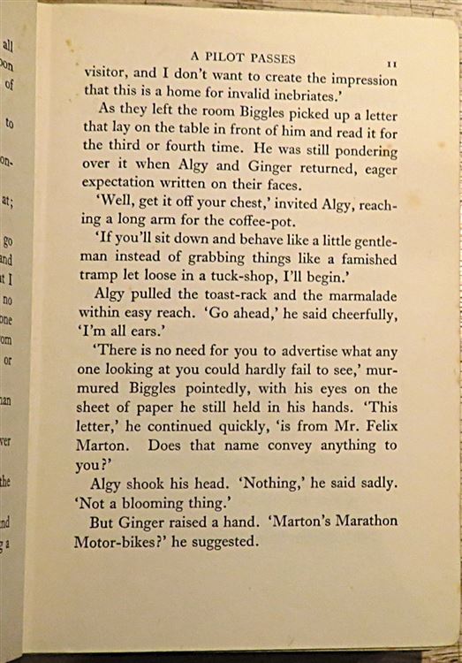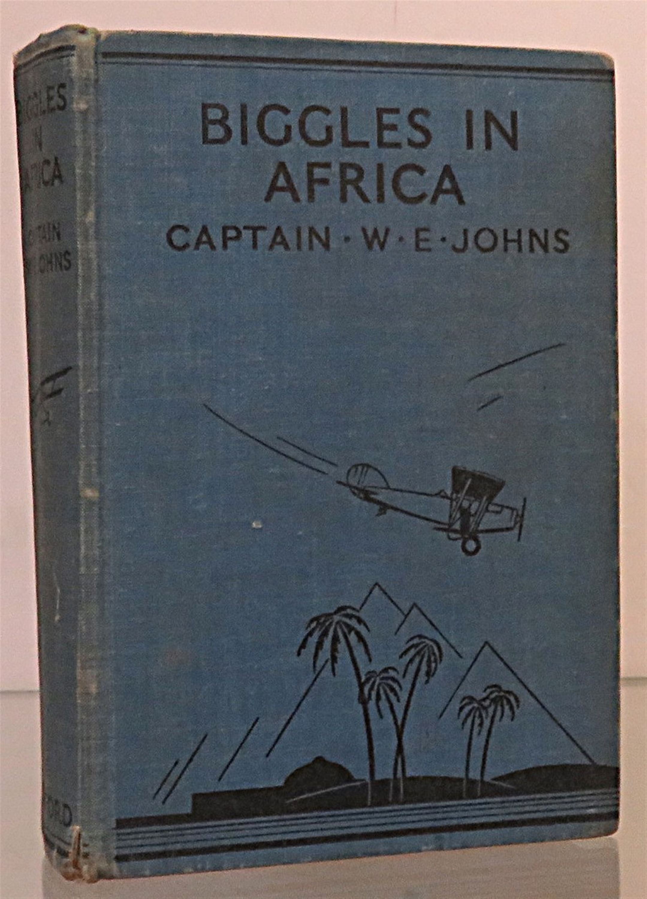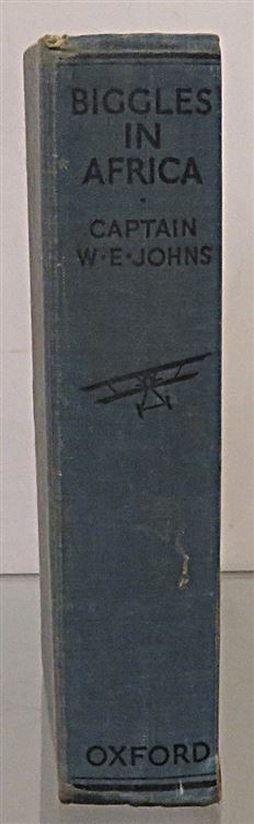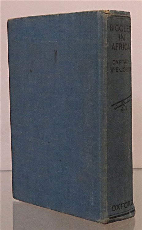 St Mary's Books is proud to present this 1936 early edition of "Biggles in Africa" by Captain W. E. Johns. Bound in blue cloth with black ink lettering and charming illustrations to the cover and spine, this hardback book has 256 pages of text. This tale of heroism and adventure is peppered with black ink illustrations, and features a charming full-colour frontispiece, "to his surprise it was two or three miles away". This book is in fair to good condition, the cover is bumped and worn, the spine is weak, and there is significant foxing to the edges and some foxing throughout the book. However, the copy remains clean and readable - remarkably so given its age and rarity. This book is looking for a new home, and would make for a perfect gift for any Biggles fans.