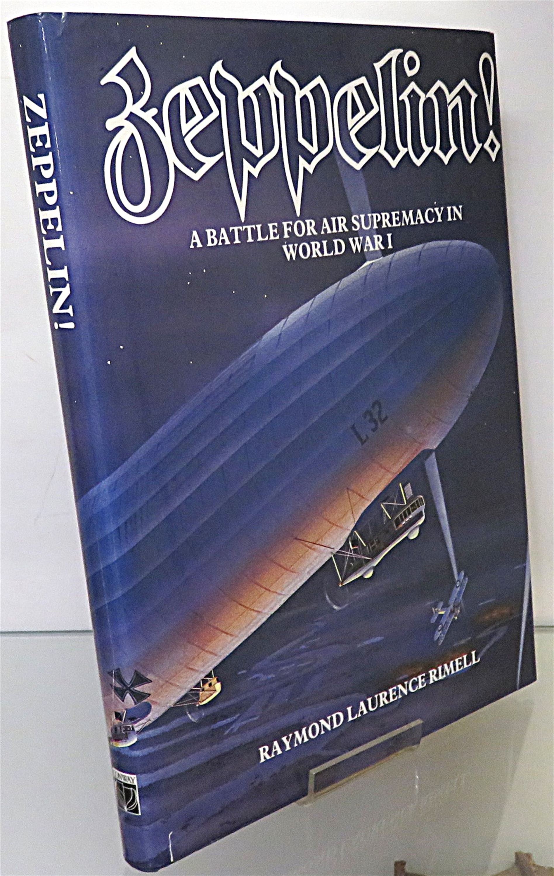 This lovely 1984 first edition of "Zeppelin! A Battle for Air Supremacy in World War I" by Raymond Laurence Rimell, is housed in its original dustjacket, featuring a full-colour painting by the author of a Zeppelin in flight at night. Underneath, this hardback book is bound in navy cloth with gold gilt lettering to its spine. This book has 256 pages of text, supplemented with numerous black and white photographs, illustrations, original documents and tables, detailing the complete story of the Zeppelin offensive from its inception to the destruction of L53, the last Zeppelin to be brought down in combat. This book is in very good condition - there are few notable blemishes to its dustjacket, exterior, and interior, and the book appears virtually unread. This book is looking for a new home, and would make for a perfect gift for any avid WW1 aviation historians.