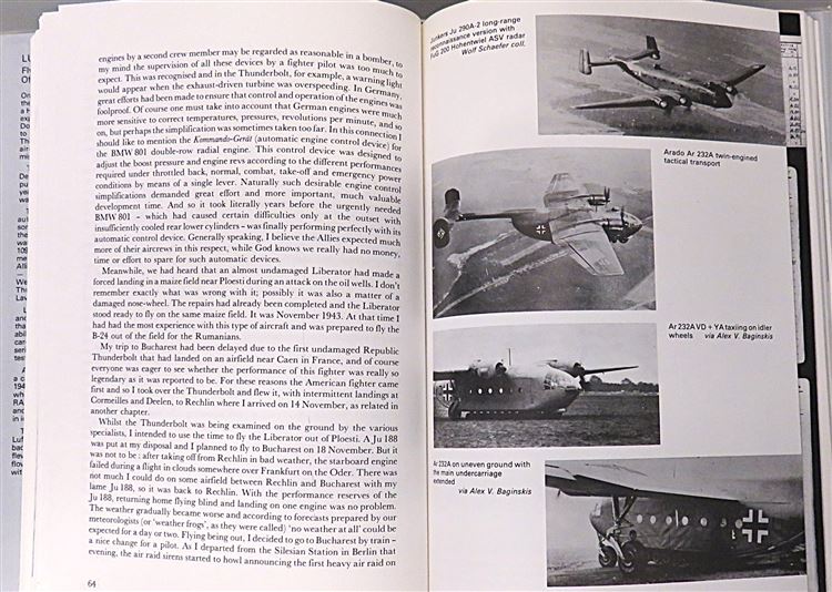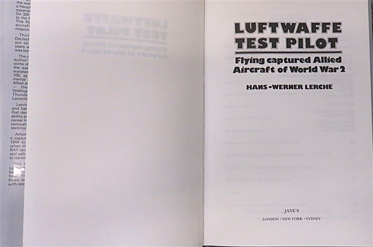 This lovely 1980 first English language edition of "Luftwaffe Test Pilot: Flying captured Allied Aircraft of World War 2" by Hans-Werner Lerche is housed in its original grey dustjacket featuring black and white photographs of various planes Lerche flew. Bound in navy cloth with silver gilt lettering to the spine, this hardback book contains 158 pages of text, peppered with rare wartime photographs, detailing the authors' hair-raising exploits as a Luftwaffe pilot who specialised in figuring out and flying intact Allied planes. This book, and its dustjacket, are in very good condition, with few notable imperfections they appear virtually unread and untouched. This fascinating book is looking for a new home, and would make for a perfect gift for any aviation historian.