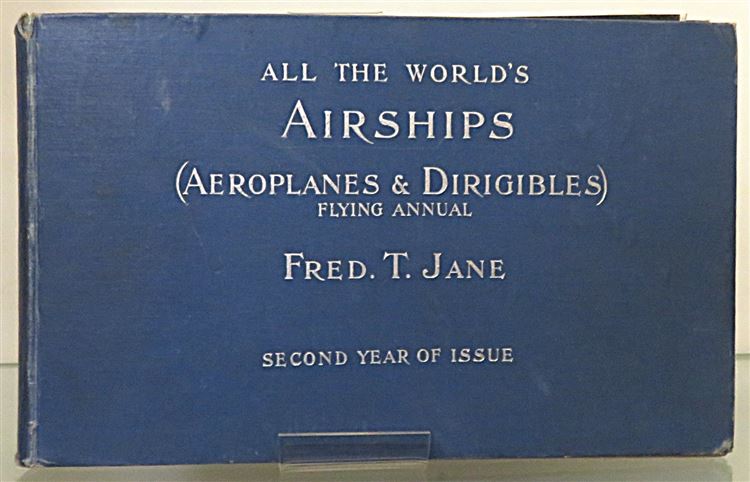Hardback. A good copy of this popular aviation annual, Founded and Edited y Fred T. Jane, this one published in 1910, The Second year of Publication. Part 1. Aeroplanes And Dirigibles Of The World. Part II. The World's Aerial Engines. Part III. Aerial Directory And Who's Who. Handsomely bound in navy cloth with titles in silver to the front and spine. Adverts to the prelims and to the rear. All Aeroplanes and Dirigibles of the time are listed alphabetically with an image or diagram for each. The binding is a little worn with a little lifting of the cloth to the rear. The text block is a little weak with cracking to the internal hinges with pages iii to vi partly detached and pages vii to xiv loose. The rest of the pages are clean and in good condition with no further loose pages. pp. xv + iv + 466. Overalla good copy of a scarce title.