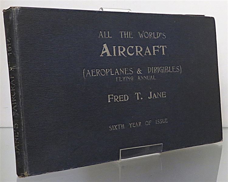 Hardback. Being the Sixth year of Publication of Fred T. Janes influential aviation yearbook, this one published in 1914. Part A. Aeroplanes And Dirigibles Of The World. Part B. Historical Aeroplanes Of The Last Six years. Part C. The World's Aerial Engines. Part D. Aerial Directory. A comprehensive snapshot of global aircraft, aero engines and aerial navies just as World War I began, making it a key historical reference despite wartime censorship. Bound in navy cloth with silver lettering to the fromt and spine. The binding presents well despite a little edge wear and fading to the spine. There is cracking to the internal hinge although the binding is still quite firm. However, pages ii through to xv are loose. Overall a good copy of a scarce title. A must for any aviation enthusiast.