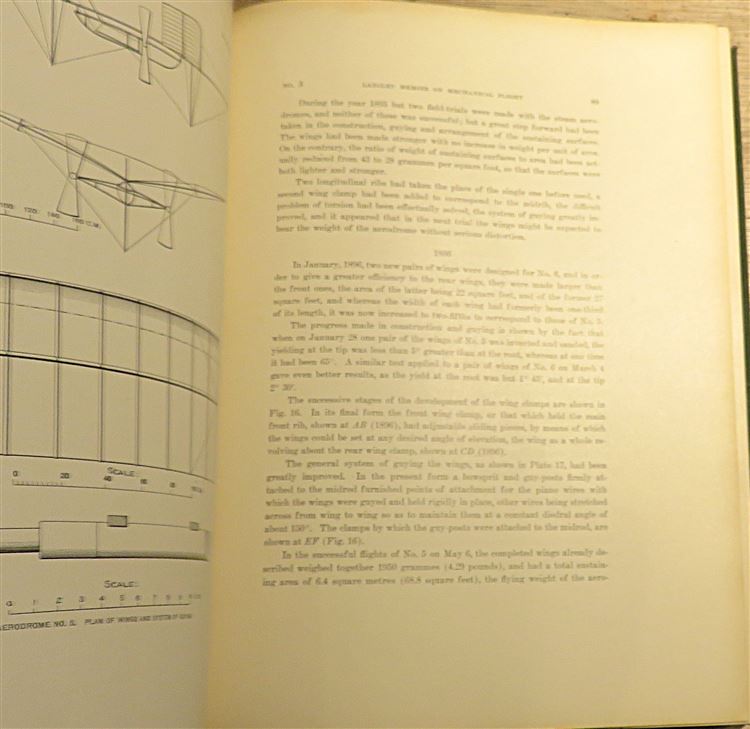 Hardback. First American Edition bound in a deep green cloth with gilt titles to the front and spine. A twp part scientific publication detailing Samuel Pierpont Langley's experiments in aerodynamics, chronicling his progression from rubber powered models to steam driven aerodromes, highlighting challenges and significent breakthroughs. Overall a very good copy with the binding showing just a little wear. The text block is tight and the pages are clean, book-plate to the front paste down. Part I. 1887 TO 1896 By Samuel Pierpont Langley. Part II. 1887 TO 1903 By Charles M. Manly pp. x + 320. This book is heavy and may require extra shipping.