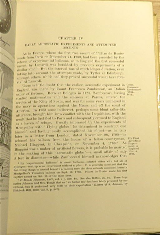 Hardback. A first edition of this comprehensive look at early British flight, covering pioneers like Lunardi, early airships, parachutes and technical developments. Complete with a dust jacket which is a little worn to the extremities with small pieces missing to the top and base of the spine. Internally the text block is tight. Light tape residue to the front and rear free endpapers, although the rest of the pages remain clean. pp. xxii + 436. Illustrated with historical images, focusing on the era before powered flight truly dominated.