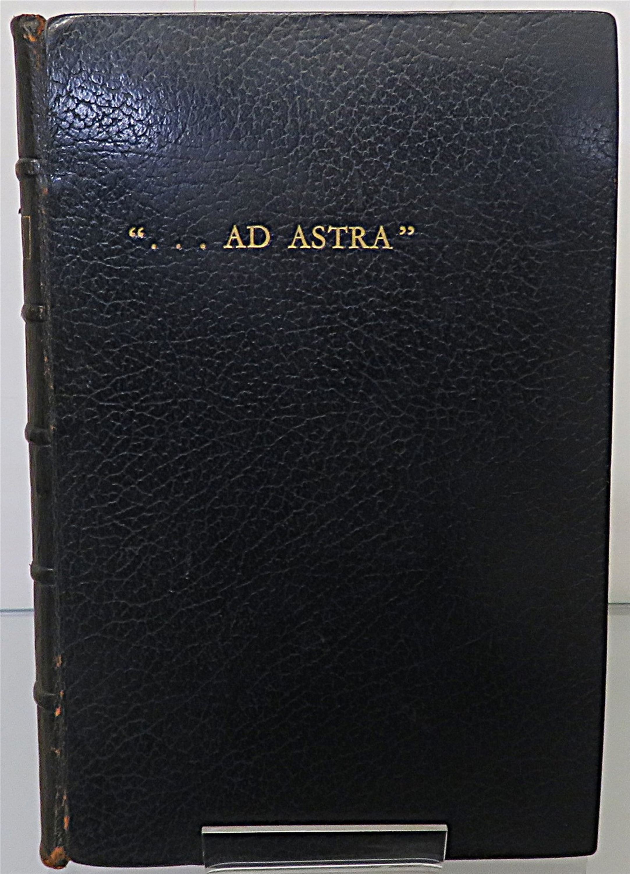 Written a year before his tragically early death at the age of 22, "Ad Astra" or, "To Malta in an Aircraft Carrier" constitutes a biographical account of Arnold Barlow's adventures in aviation. Handsomely bound in black leather with gold gilt lettering, this hardback book contains many of Barlow's original black and white photographs supplementing the tales of his adventures, as well as a small obituary section at the back, recounting the contemporary newspaper reporting of his tragic passing. This book is exceptionally rare, as it was privately printed, it most likely constitutes one of a very limited print run. This particular copy is in very good condition, with only some very minor wear to the boards, however the text remains clean, bright, and readable. This wonderful slice of history and incredibly rare book is looking for a new home, and would make for the perfect gift for any fans of Arnold Barlow.
