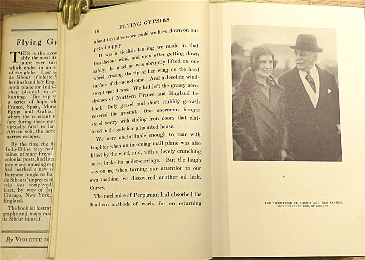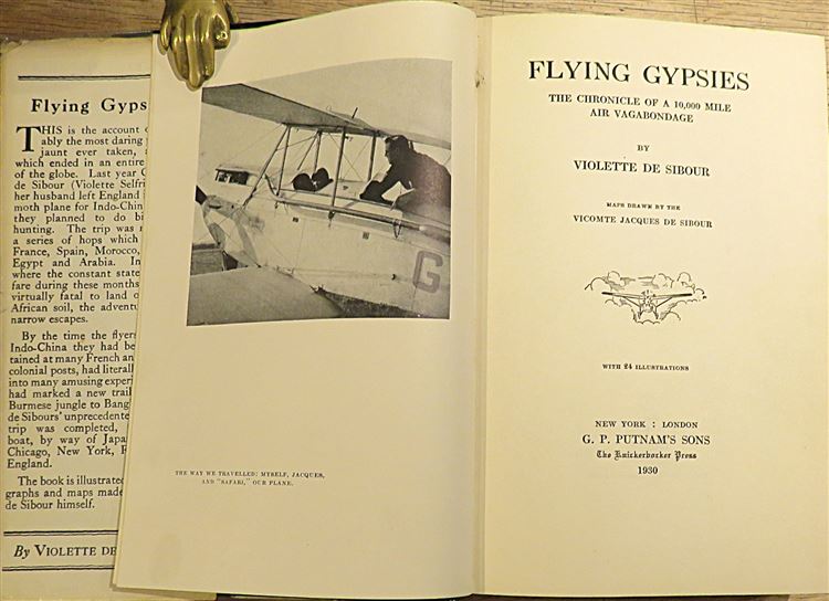 Hardback. First Edition, 1930, complete with a pictorial dust jacket. Underneath lie black cloth boards with titles in green to the front and spine. Maps to the endpapers with illustrations throughout by Vicomte Jacques De Sibour. Overall a good copy with the cloth boards showing just minimal wear. The dust jacket is worn with pieces missing to the extremities. The pages are clean throughout. pp. iv + 306. A remarkable journey by air, in a tiny moth plane, undertaken by the Countess de Sibour ( Violette Selfridge) and her husband which ended in an entire jaunt around the globe.