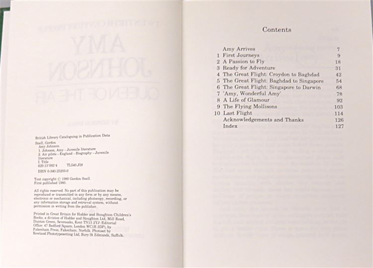 This lovely 1980 first edition of "Amy Johnson: Queen of the Air" by Gordon Snell is housed in its original pictoral dustjacket, featuring a black and white photograph of Johnson layered over a stunning illustration of a plane. Bound in green cloth with gold gilt lettering to the spine, this hardback book has 128 pages of text, peppered with black and white photographs. This book is in very good condition, though the dustjacketis slightly bumped and thus can only be described as good, the book itself has few notable imperfections. "Amy Johnson: Queen of the Air" is looking for a new home, and would make for a lovely gift for any aspiring aviators.