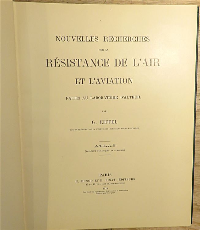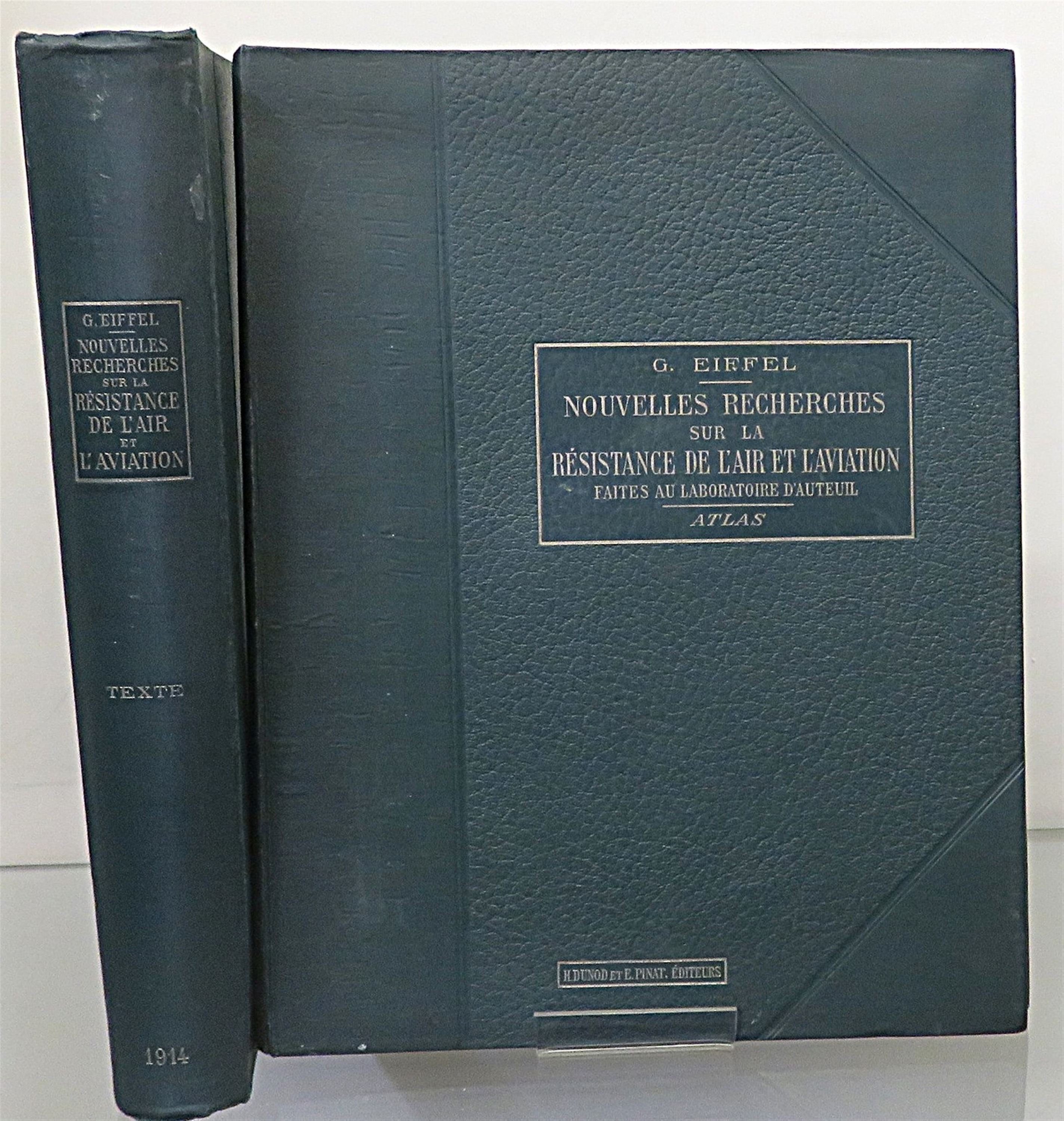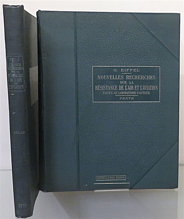 Hardback. A fascinating two volume set by French civil engineer Gustave Eiffel, best known for the Eiffel Tower. This book presents the results of wind tunnel tests carried out at the Auteuil laboratory between 1911 and 1913. With detailed studies on the drag of geometric shapes, wing profiles, propellers and model airplanes for aerodynamics. Providing reliable scientific data to improve aircraft design and understand drag phenomena. Part of the research is supplemented by an atlas of plates. This two volume set is handsomely bound in deep green cloth which shows just a little wear and fading. Internally the pages are clean despite a large neat inscription, dated 1916, to the front free endpaper to both volumes. Both books contain many diagrams and black and white images, with a loose graph inserted into the Text Volume. The Atlas volume contains thirty nine interesting plates to the rear, with an extra loose plate of number thirty nine. All plates are in in very good condition. These books are a major historical reference in the field of experimental aerodynamics. A must for any aviation fan. French Text.